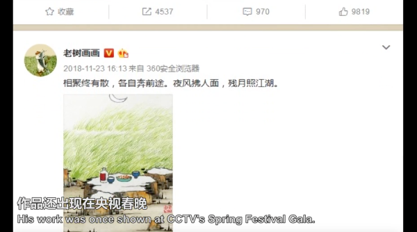 老樹,本名劉樹勇,當代藝術領域的跨界探索者。1962 年生于山東臨朐,1979 年考入南開大學中文系,受葉嘉瑩先生教導,同時師從梁崎、霍春陽等名家習畫。1983 年畢業后,為接觸優質藝術資源,他選擇到中央財經學院任教,投身視覺語言研究,還涉足電影批評。? 迫于生計,老樹曾暫別繪畫,參與書籍裝幀、室內裝修等工作。上世紀 90 年代中期,他轉向攝影領域,提出 “觀念攝影” 概念,成為知名批評家與策展人。2007 年父親重病,苦悶中的他重拾畫筆,以 “老樹畫畫” 開啟藝術新生涯。 老樹的作品風格獨樹一幟。畫面常出現身著民國長衫、面目模糊的悠然男子,搭配閑花野草、山水樓臺。他以簡潔水墨勾勒,大量留白營造空靈意境,線條蒼勁靈動。畫作多無傳統題款,少數配六言白話詩文,詼諧中暗藏哲理。2011 年作品在微博走紅,后出版多本畫集,在國內外舉辦展覽,登上央視春晚,成為當代畫壇獨特風景。從教師、攝影批評家到畫家,他的多元經歷為藝術創作注入深厚底蘊。