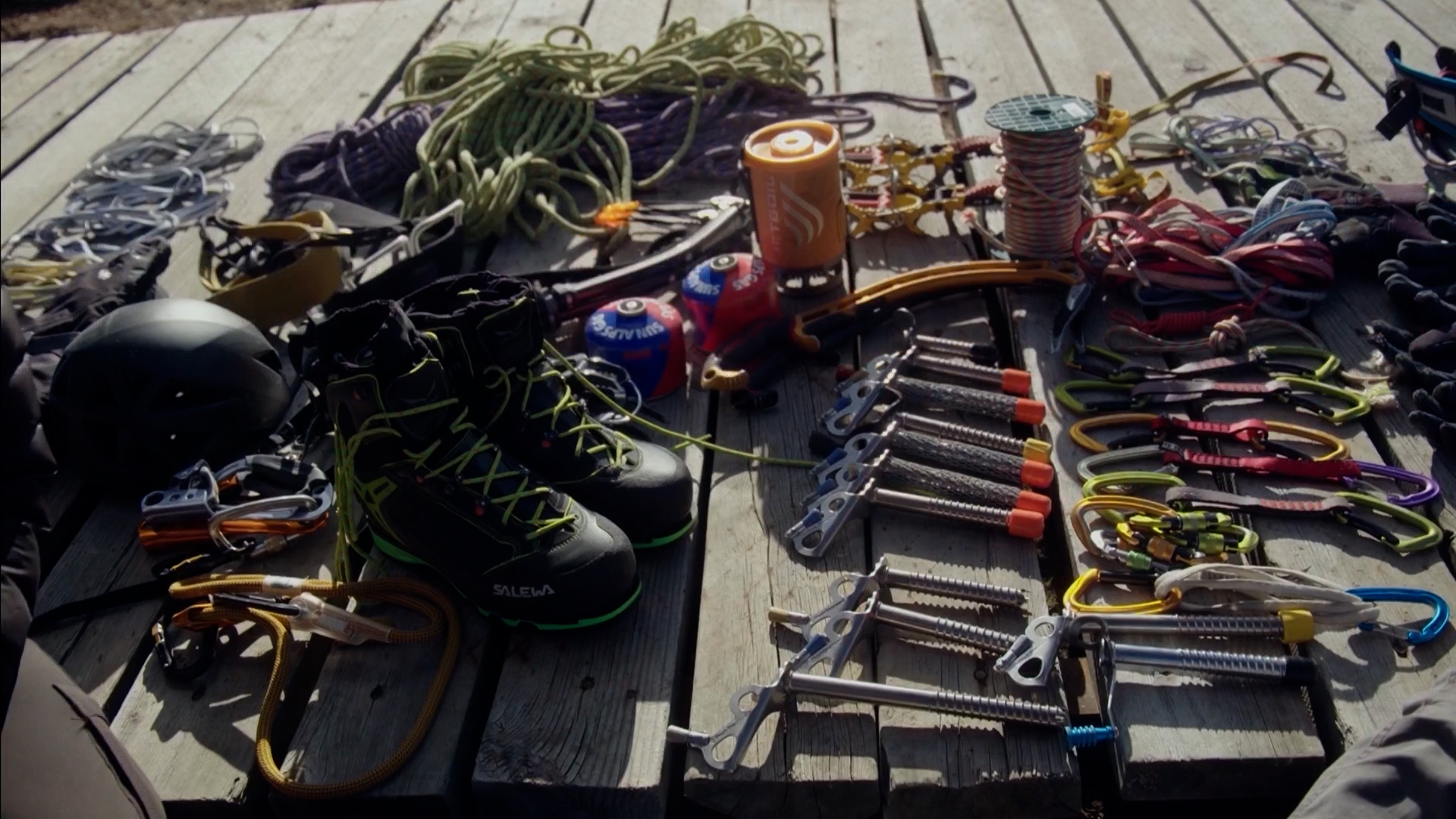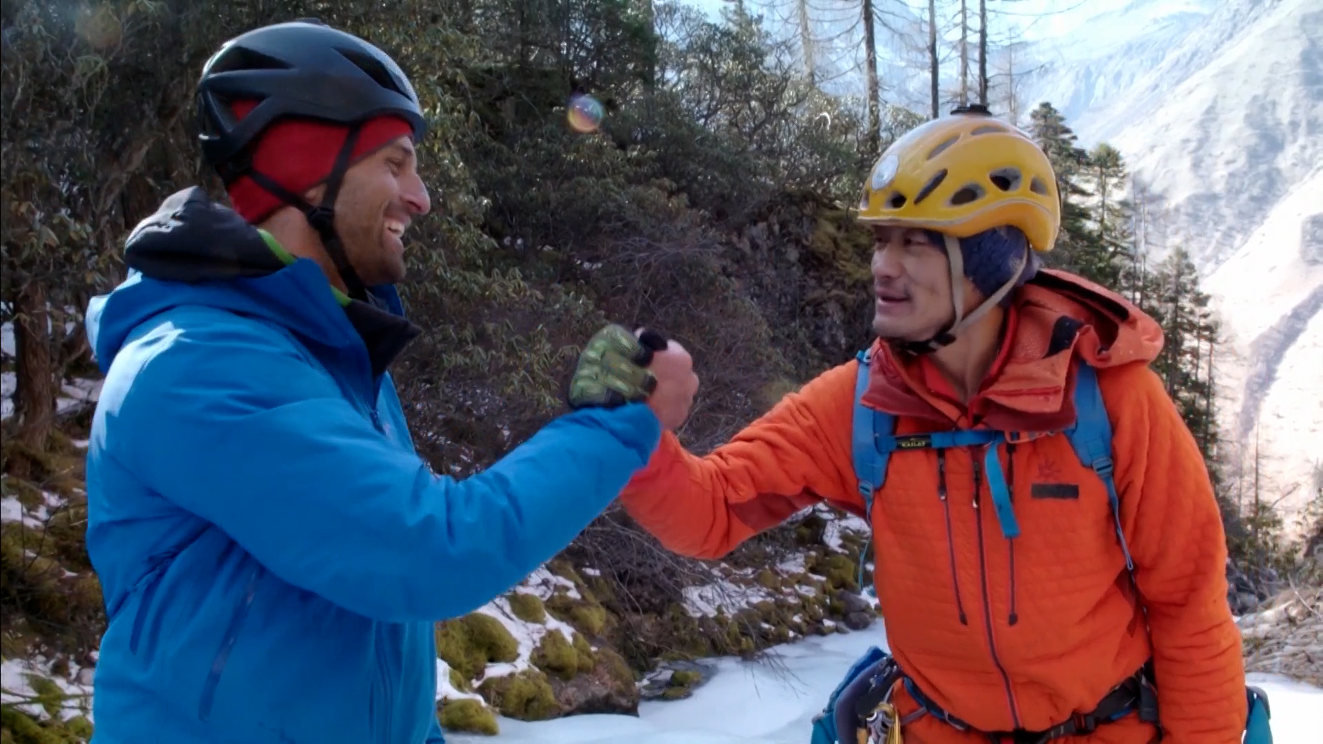 位于四川境內的四姑娘山,在藏語中有“勇士之王”之意。它被稱為“中國的阿爾卑斯山”,“登山者的天堂”。本與中國登山運動員劉勇,將在此攀登海拔3600米處的、一座長300米的冰瀑。本和劉勇見證了一次“宰殺牦?!?。本極不愿意見到這樣的事,但他還是忠實地記錄下來。而其實,在他的鏡頭里,村民們的表情也顯露著對“生命逝去”的緊張。這里的冬天沒有作物生長,人們不能僅靠去當地商店買東西充饑。這是當地文化很重要的一部分,當地人想在這里生存不得不這樣做。這里的居民們平日吃的用的,基本都屬于純天然或養殖品,營養價值極高。第二天,本和劉勇二人做足準備,來到這座冰瀑前。他們都沒想到,陽光使冰瀑有點融化。這讓他們的手套、衣物等沾上了水,他們感覺有可能被凍傷。二人互相扶持,雖精疲力盡,最終還是征服了這座冰瀑。除了令人贊嘆的,除了超人的技能,便是他們對自然的敬畏?!罢驹诒夙敹烁╊利惖纳焦?,你會感到很震撼?!北菊f。我們同樣能做到的就是——遵守規則、敬畏自然。